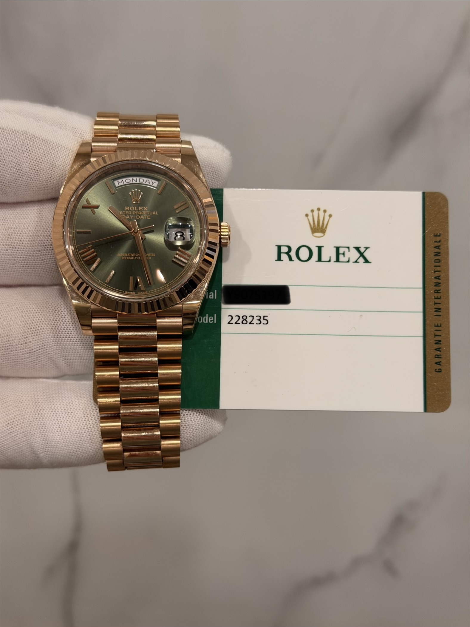 Contact Concierge →40 mm, Green, President, Watch and white card, Unknown
